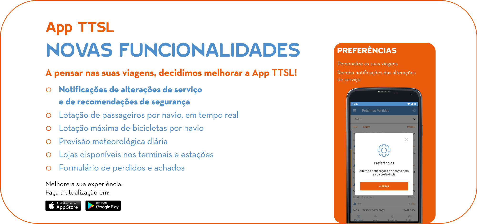 | Partida: 16:30 | Terminal: CAIS DO SODRÉ | Destino: MONTIJO | Estado: Embarque | Sala: 1 |
